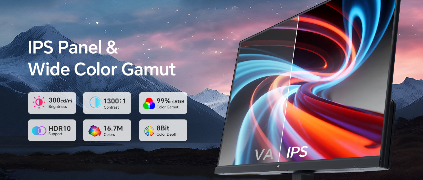 【Excellent Color Accuracy】99% sRGB gamut, 16.7M colors, HDR10 support, and 1300:1 contrast bring vivid, lifelike visuals for any task.