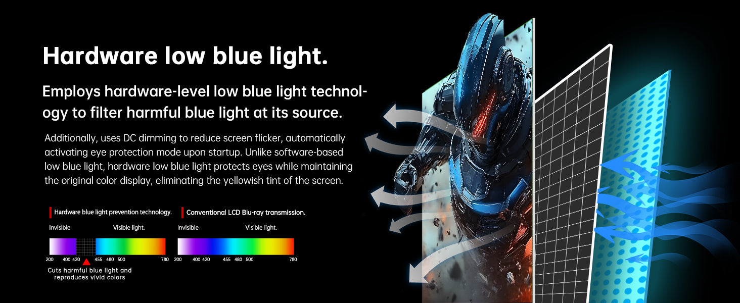 【Comfort‑Oriented Design】Flicker‑free, low‑blue‑light panel reduces eye strain, while 400 cd/m² brightness ensures clarity even in bright environments.