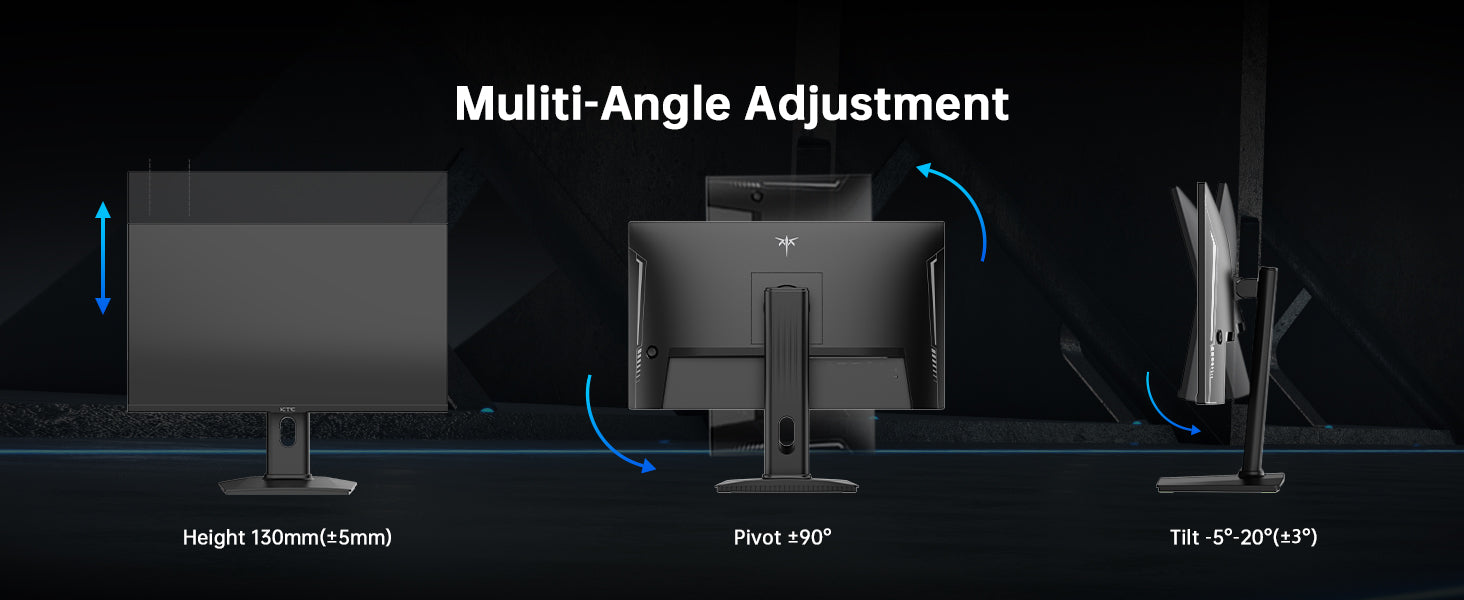 【Flexible Ergonomics】Tilt –5° to +20°, pivot ±90°, adjust height up to 110 mm, or VESA‑mount (100×100 mm) to create your ideal setup.