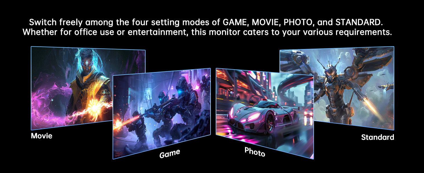 【Gamer‑Focused Features】Built‑in crosshair, timer, black level, and RTS/FPS/Racing modes help you stay competitive in every match.