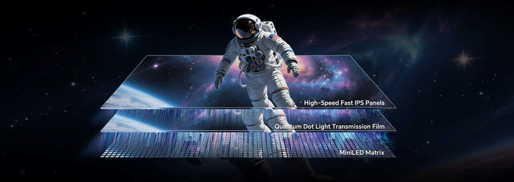 【Cinematic Colors】Quantum Dot covers 99.5% sRGB and 98% DCI-P3 with △E<2 accuracy for vibrant, lifelike images in games and movies.
