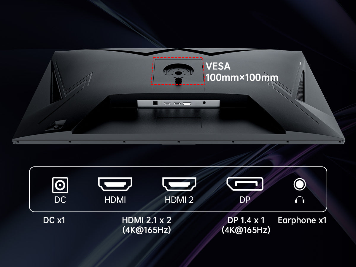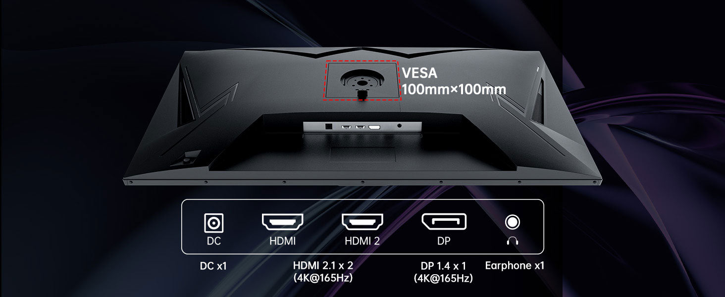【Wide Compatibility】HDMI 2.1 and DP 1.4 support PCs and next-gen consoles, plus 100×100 mm VESA mounting for flexible setups.