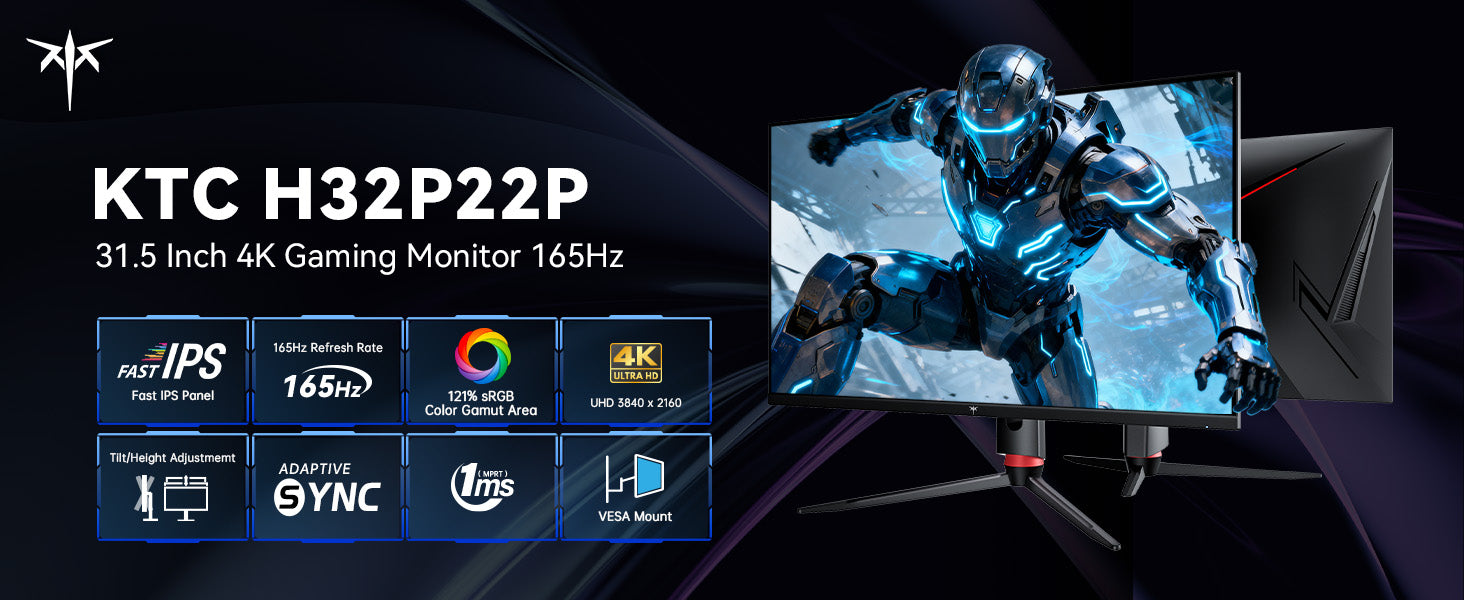 KTC 32" 4K 165Hz Gaming Monitor with Vesa Mount | H32P22P