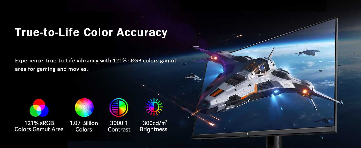 【Vivid & Accurate Colors】121% sRGB gamut, 1.07B colors, 3000:1 contrast, and 300 cd/㎡ brightness deliver rich, lifelike color performance.