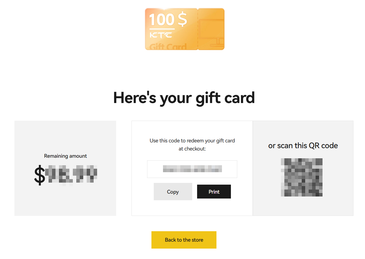 Note: Please keep your gift card code safe. Once lost, it will not be reissued